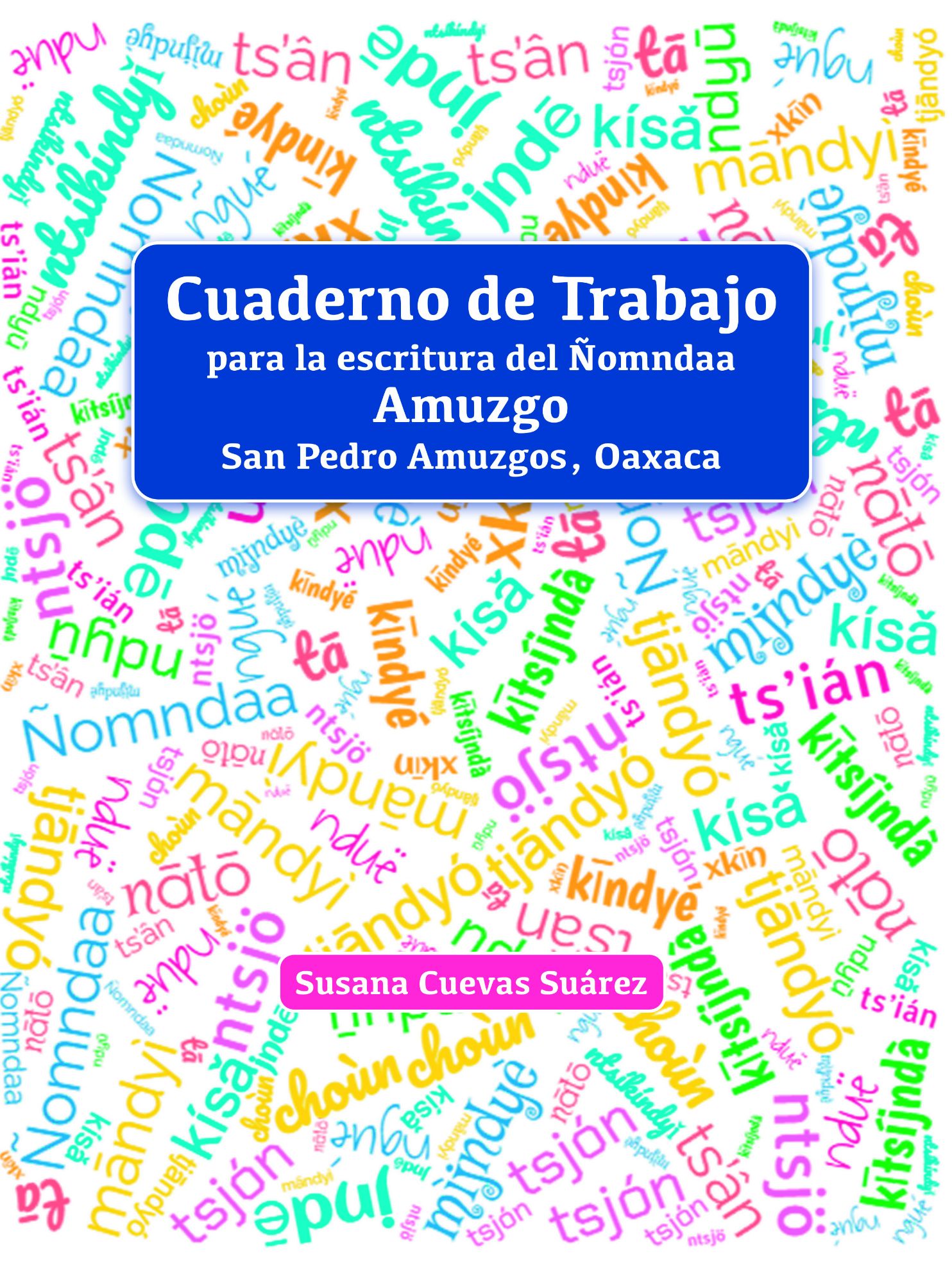 Cuaderno de Trabajo para la escritura del Ñomndaa Amuzgo. San Pedro Amuzgos, Oaxaca, coordinado por Susana Cuevas Suárez, es una herramienta esencial para la preservación y enseñanza de la lengua amuzga de San Pedro Amuzgos, Oaxaca. Esta obra busca ayudar a los hablantes a fortalecer sus habilidades de lectura y escritura en su idioma natal, resaltando las diferencias con el amuzgo hablado en Guerrero. Con quince lecciones que incluyen ejercicios, cuentos cortos y material didáctico, el cuaderno facilita el aprendizaje de los dígrafos y sonidos únicos del ñomndaa. La autora subraya la importancia de la lengua como portadora de saberes y expresiones culturales irremplazables. Además, el libro incluye un apartado de respuestas y datos léxicos y gramaticales que sirven de apoyo tanto para hablantes como para estudiosos de la lengua. Esta obra no solo fomenta la alfabetización en amuzgo, sino que preserva un valioso patrimonio lingüístico.