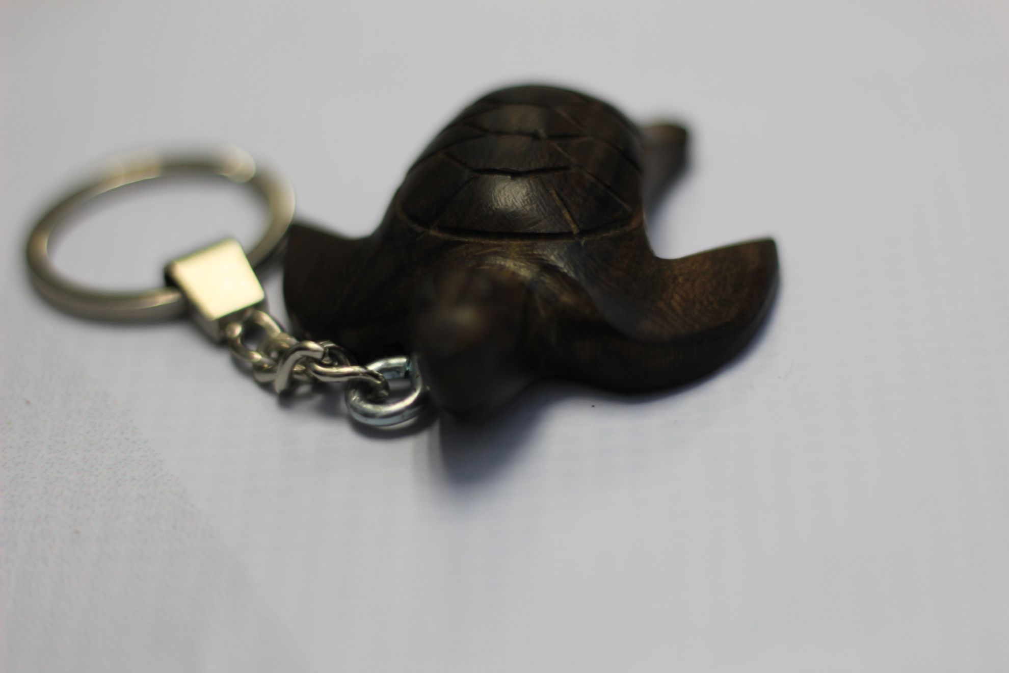 Llavero elaborado con madera de Ciricote rescatada. Medidas 6 x 6 x 3.5 cm, con herraje metalico.