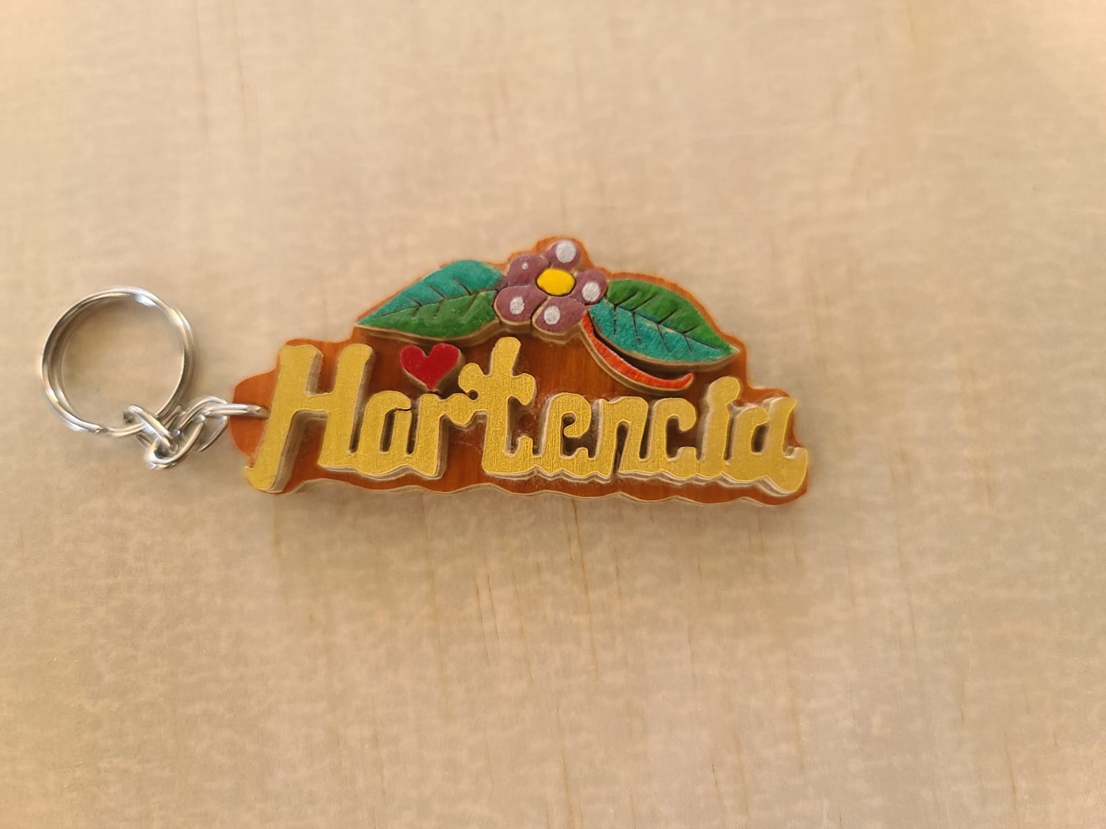 Llaveros hechos a mano de madera, llevan el nombre junto con una imagen