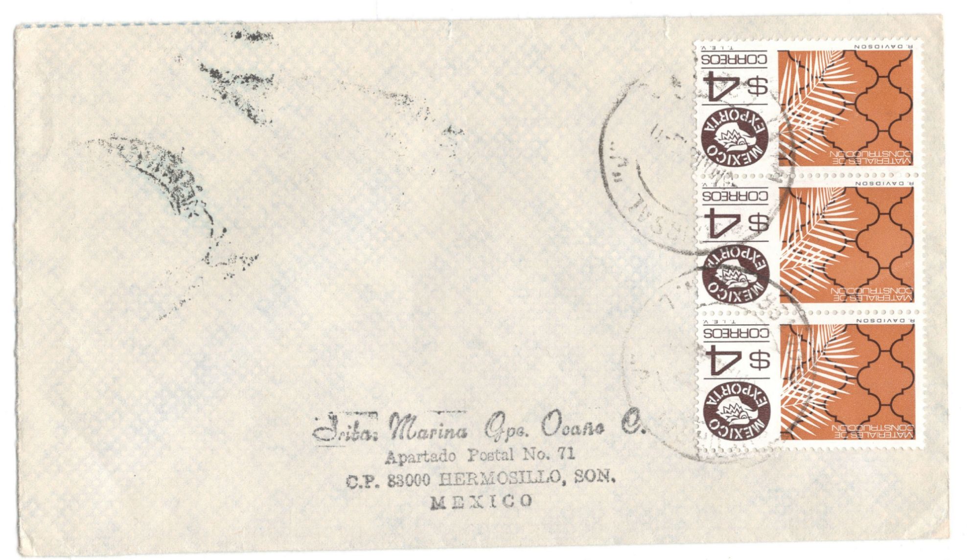 MÉXICO EXPORTA MAT CONSTRUCCIÓN SOBRE CIRCULADO 1984 DE MONTERREY A HERMOSILLO