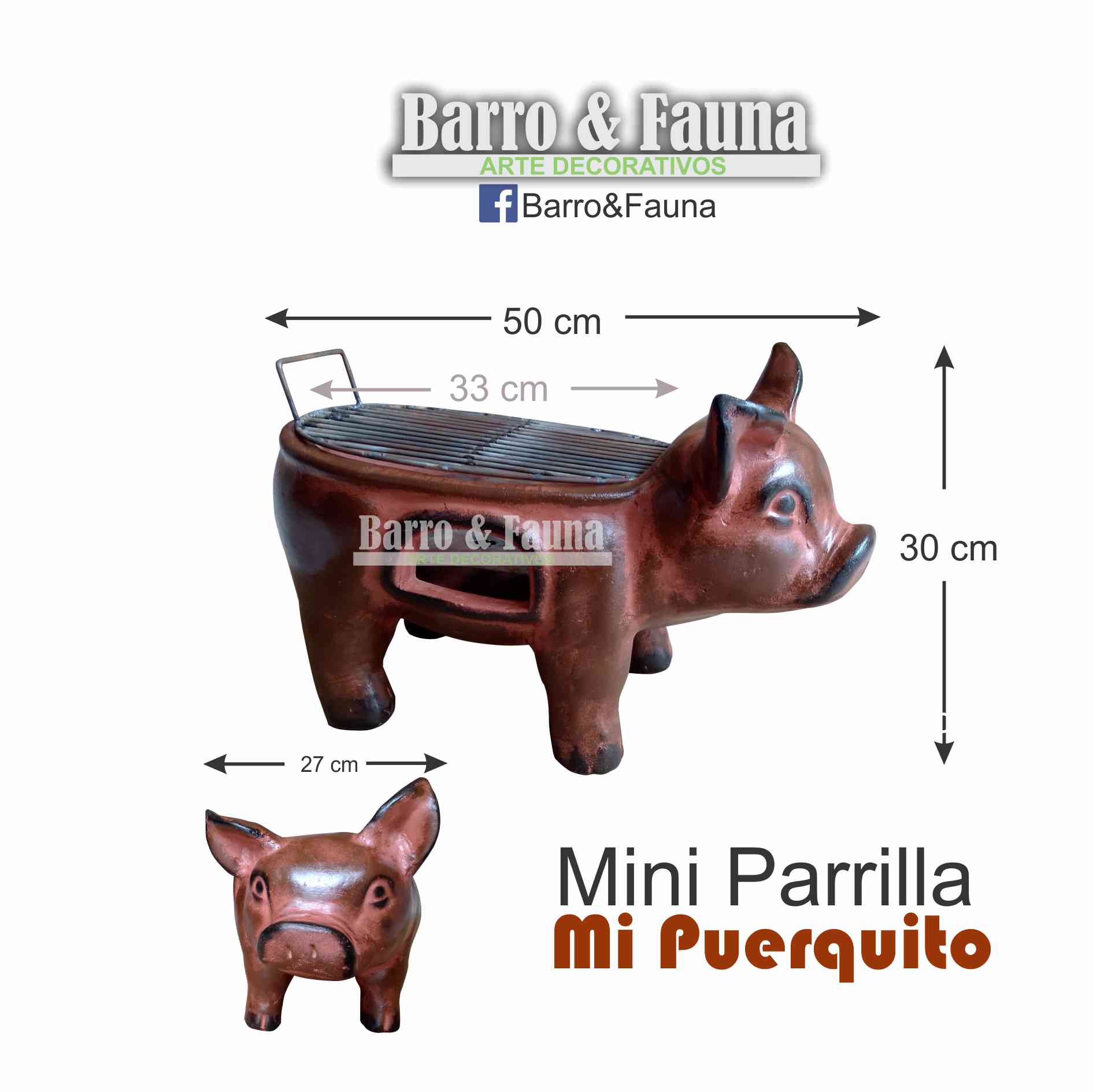 Medidas del Asador: Largo 50cm x Ancho 27cm x Alto 30c