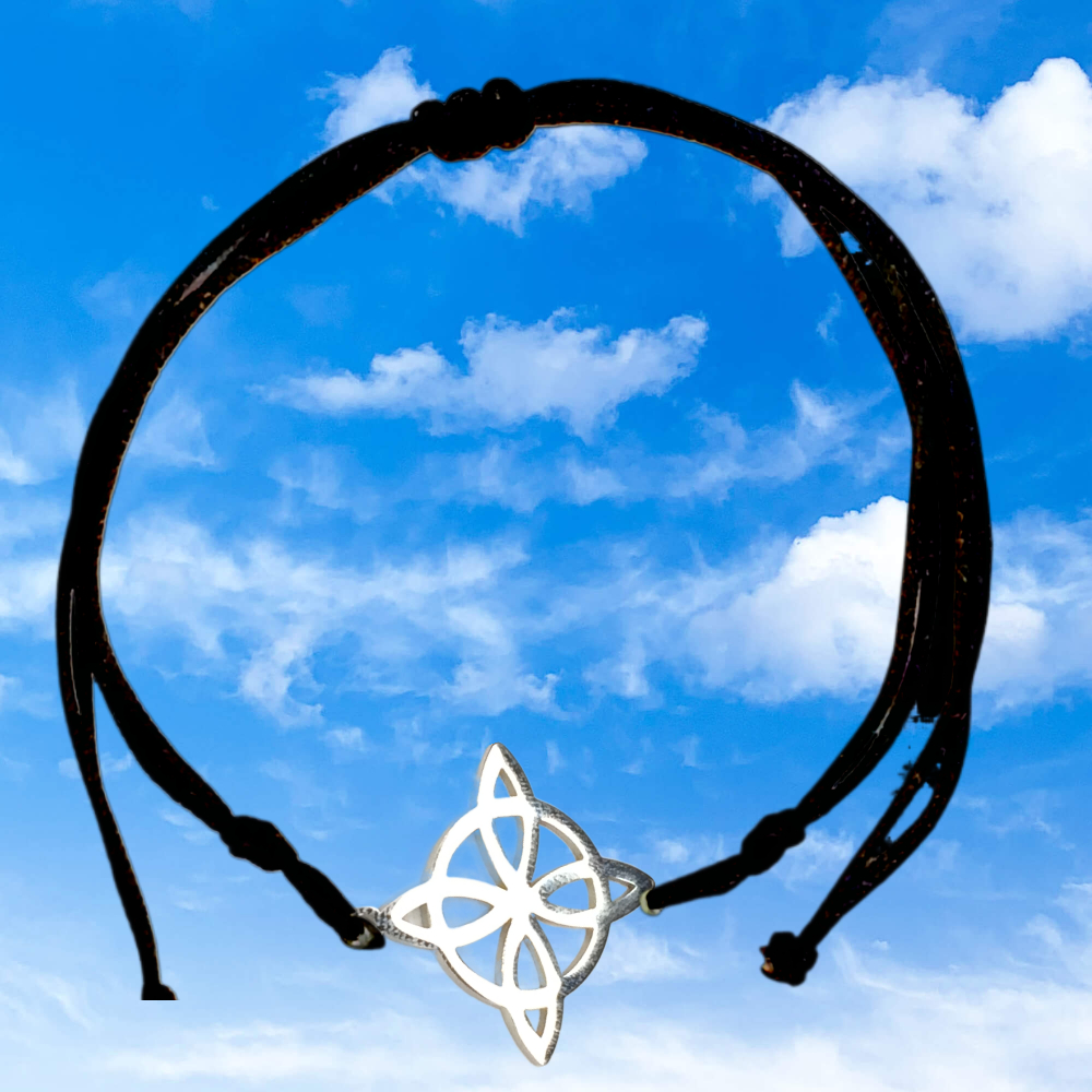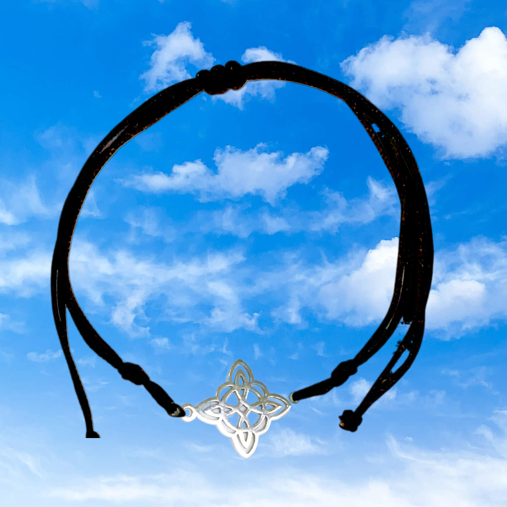 ****** 1 dije 30x30mm Nudo de Bruja  T Acero Inoxidable en Pulsera Negra AA 21.5+5cm AJUSTABLE USO RUDO ( DIJE CURADO) ***** Para Muñecas Chicas Hasta Muñecas Gruesas con Perímetro Máximo de 26cm