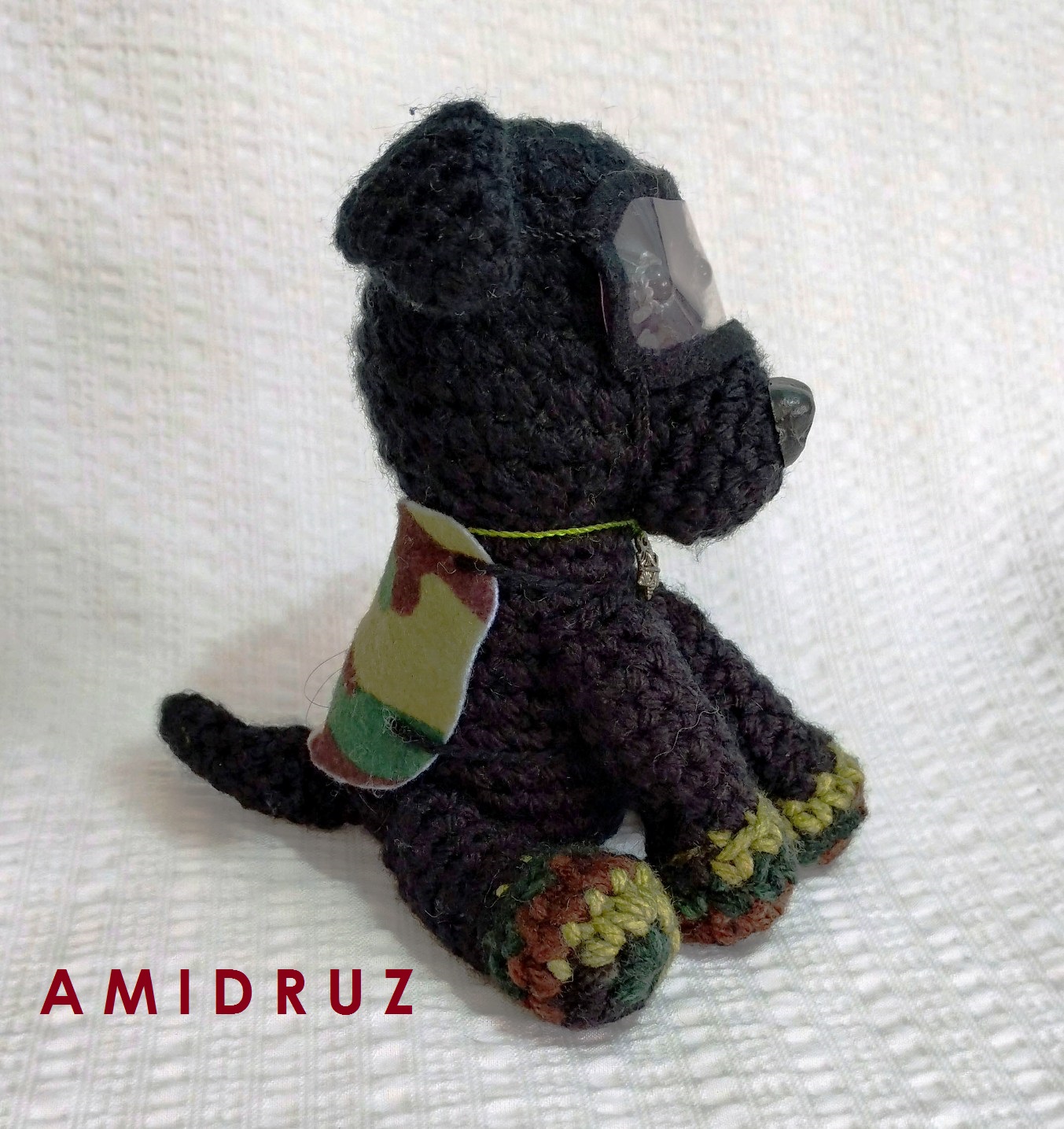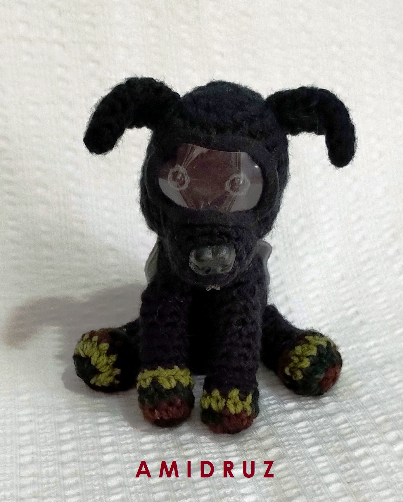 Figura de perro rescatista hecho a mano con amor y pasión con la técnica amigurumi.