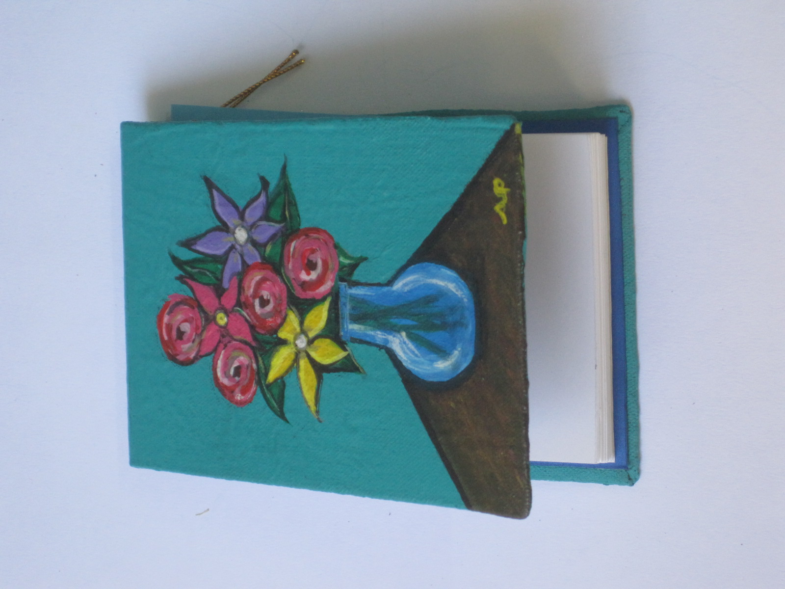 Las libretas estan hechas a mano tienen 50 hojas blancas. la pasta esta cubierta de un lienzo de tela y lleva una contraportada de opalina de color.