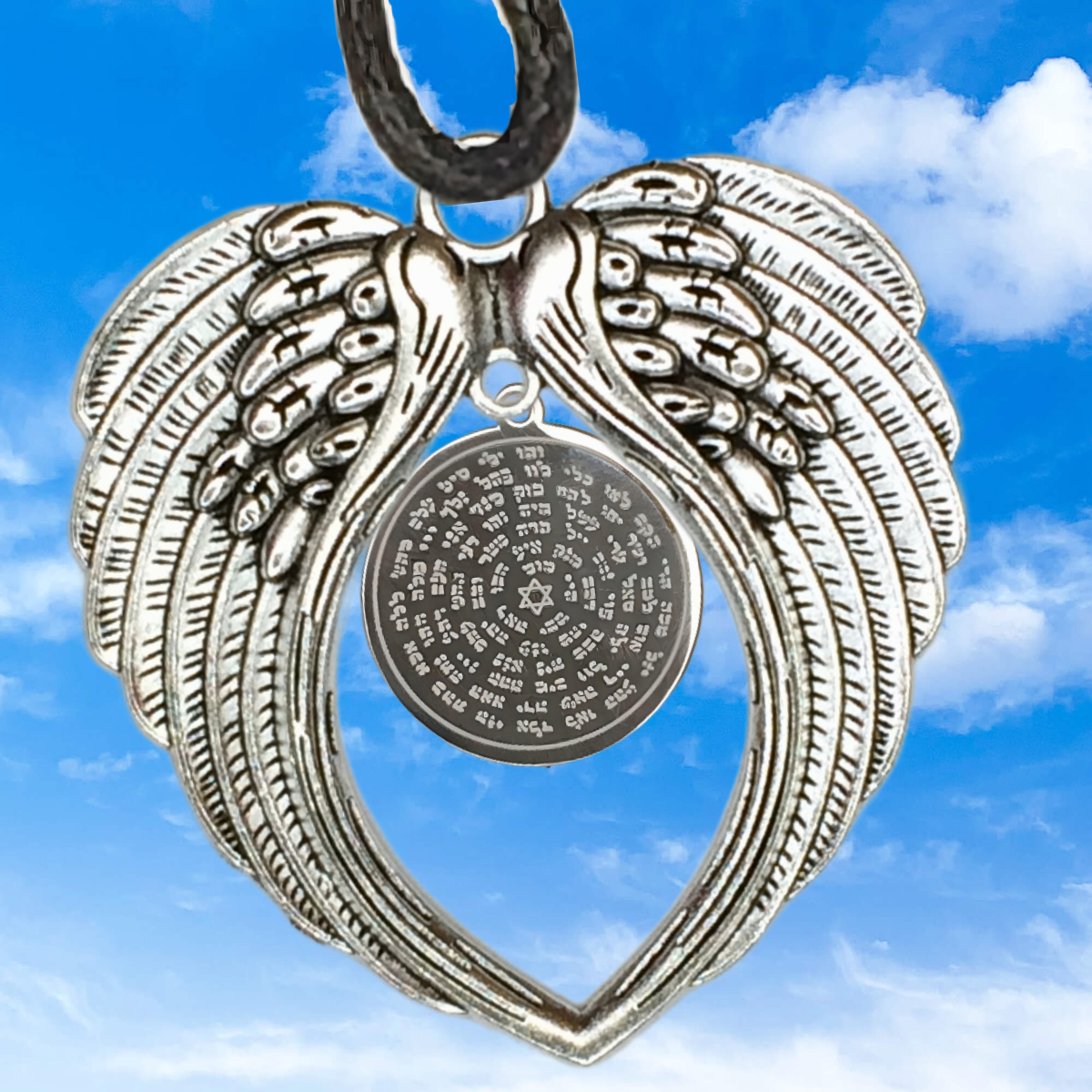 1 Dije 72 Nombres de DIOS Acero de Uso Rudo CURADO EN ALAS DE ANGEL GRANDES 80X60MM Acero de Uso Rudo CURADO EN Collar 45+5cm Alta Duracion
