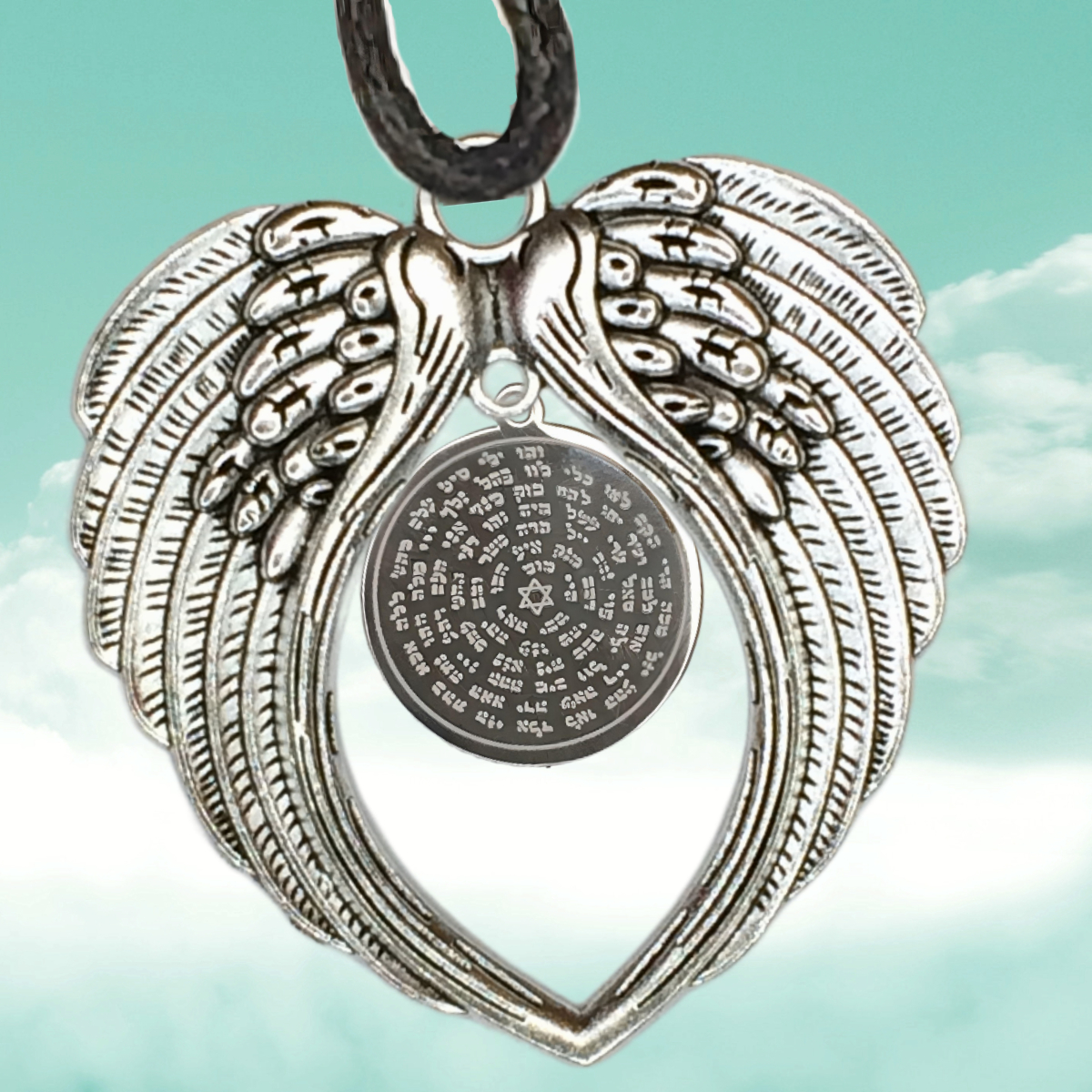 1 Dije 72 Nombres de DIOS Acero de Uso Rudo CURADO EN ALAS DE ANGEL GRANDES 80X60MM Acero de Uso Rudo CURADO EN Collar 45+5cm  Alta Duracion