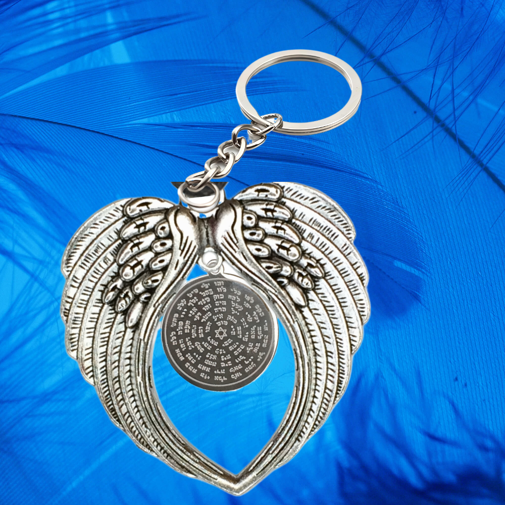 1 Dije 72 Nombres de DIOS Acero de Uso Rudo CURADO EN ALAS DE ANGEL GRANDES 80X60MM Acero de Uso Rudo CURADO  EN LLAVERO  Alta Duracion