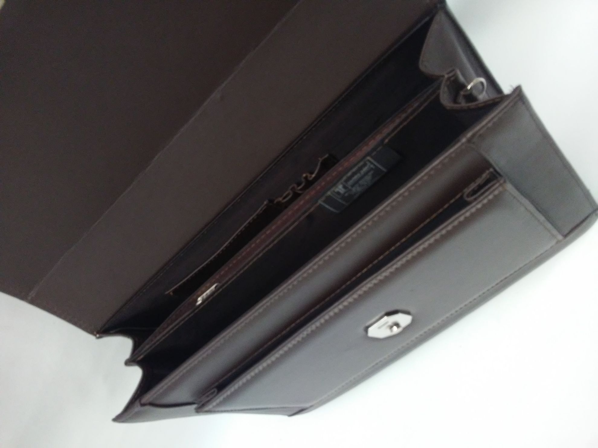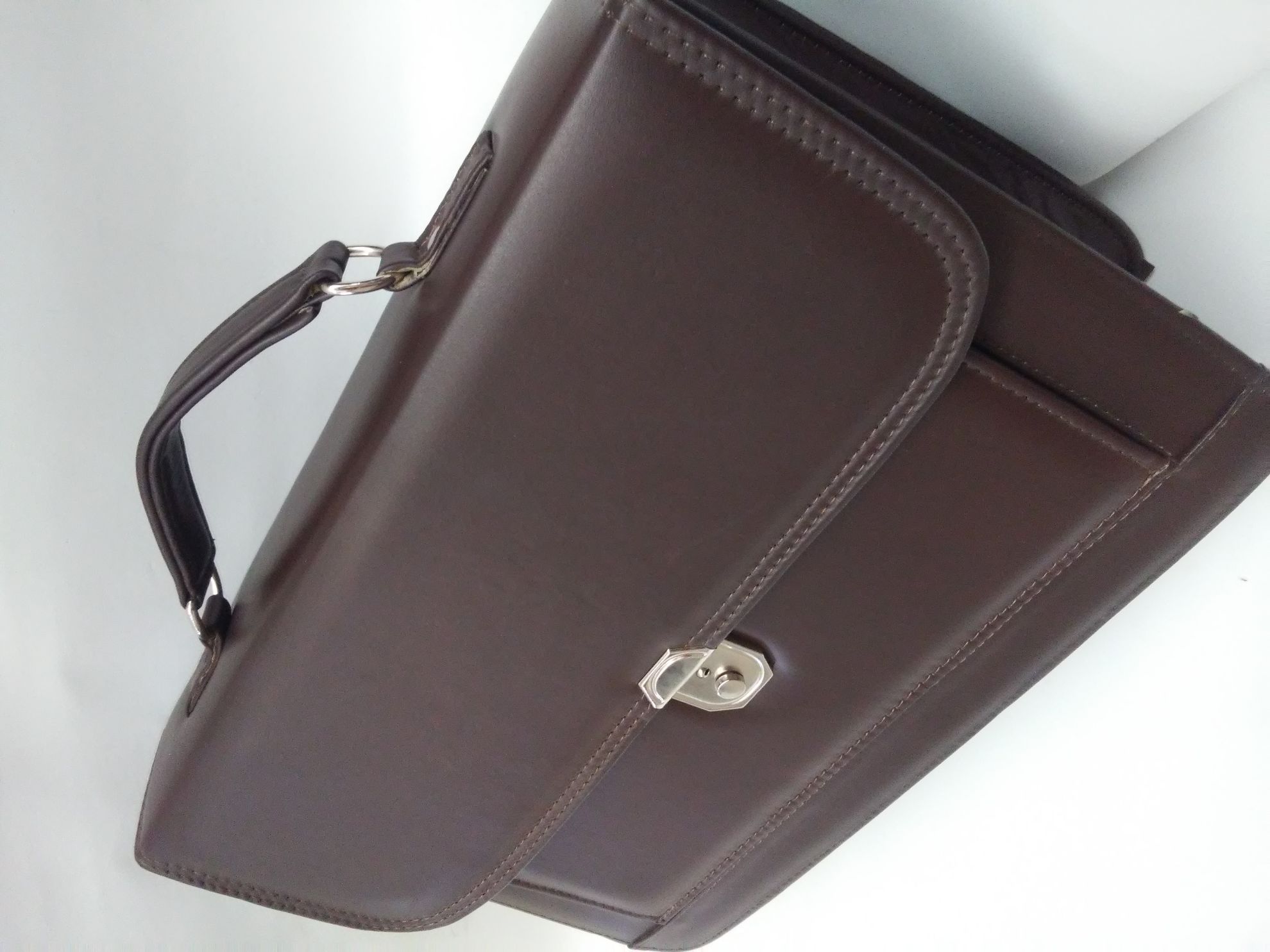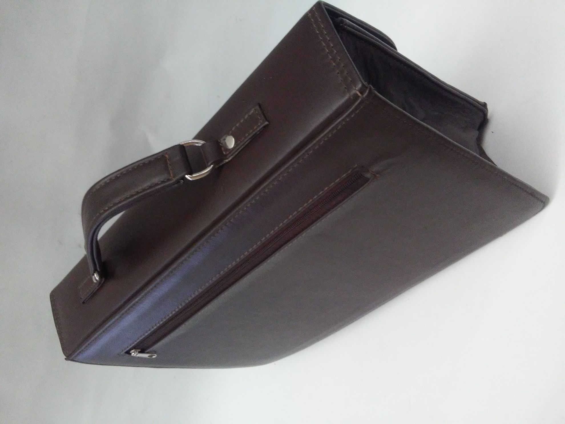 PORTAFOLIO DE TAPA LIZA ARAMDO EN CARTONCILLO LIGERO Y AGUANTADOR CON CORTE DE PIEL VACUNO VESTIMENTA..LIGERA Y FIRME LOGRANDO UNA GRAN CALIDAD EN SU DURACIÓN Y PRACTICO PARA SU PESO CON ASA DELGADA PARA COLGAR AL HOMBRO Y CHAPA CON LLAVE.