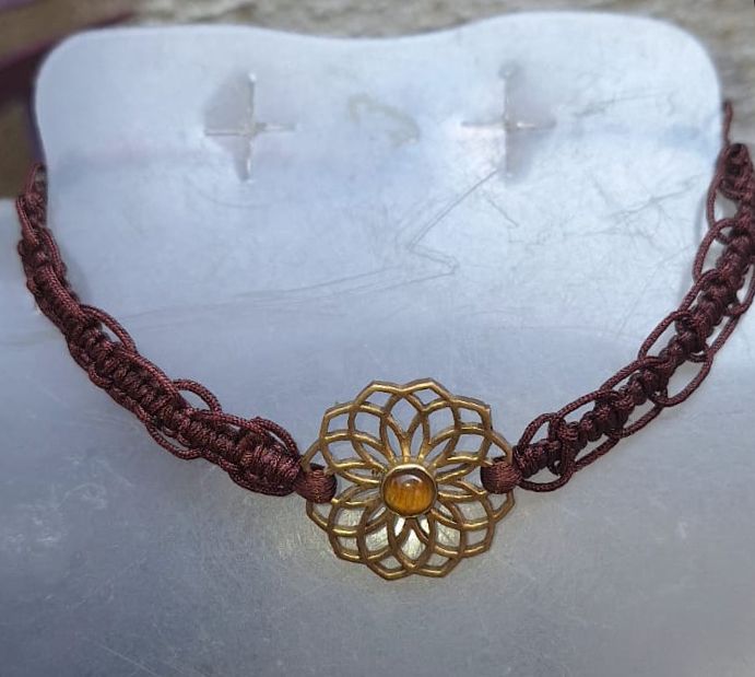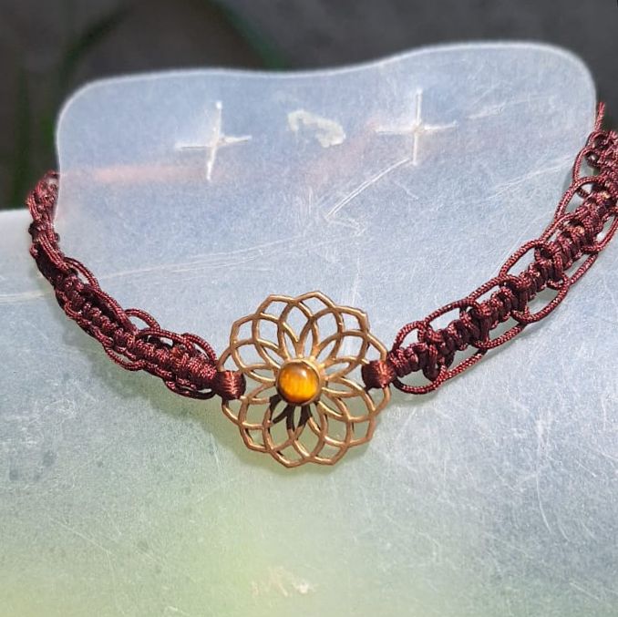 LAZ-MONT Pulsera en tejido macrame color café y mandala en el centro, con turquesina azul de protección y relajación, ideal para cualquier ocasión u outfit.