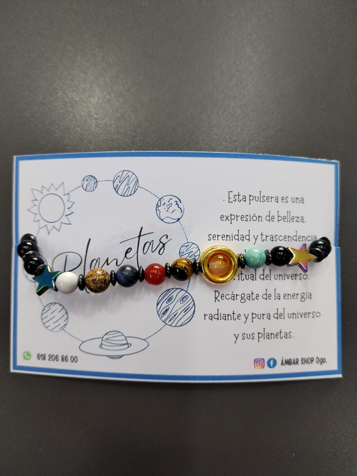 ✨ Lleva contigo la vibración positiva del universo y encuentra armonía en cada movimiento. Ya sea que busques equilibrio emocional, protección espiritual o simplemente desees conectarte con la vastedad del cosmos, nuestra Pulsera Planetaria es tu compañera perfecta en este viaje cósmico de autodescubrimiento y crecimiento.