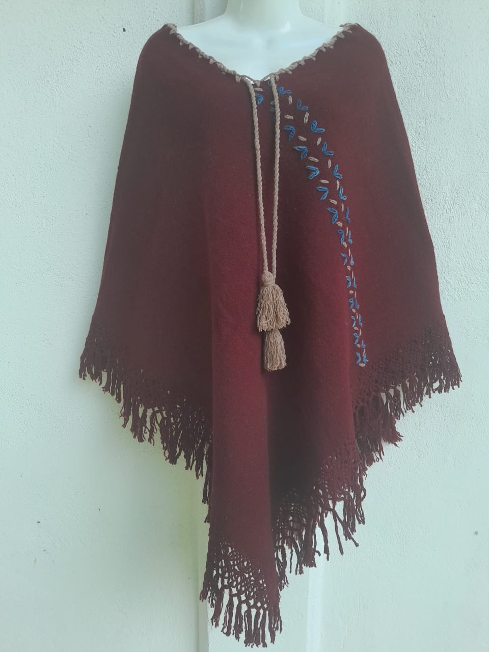Quexquemetl de lana de borrego en hilo delgado, elaborado en telar de cintura.