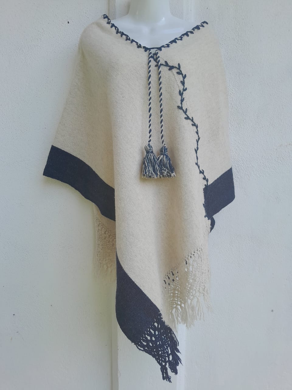 Quexquemetl de lana de borrego en hilo delgado, elaborado en telar de cintura.