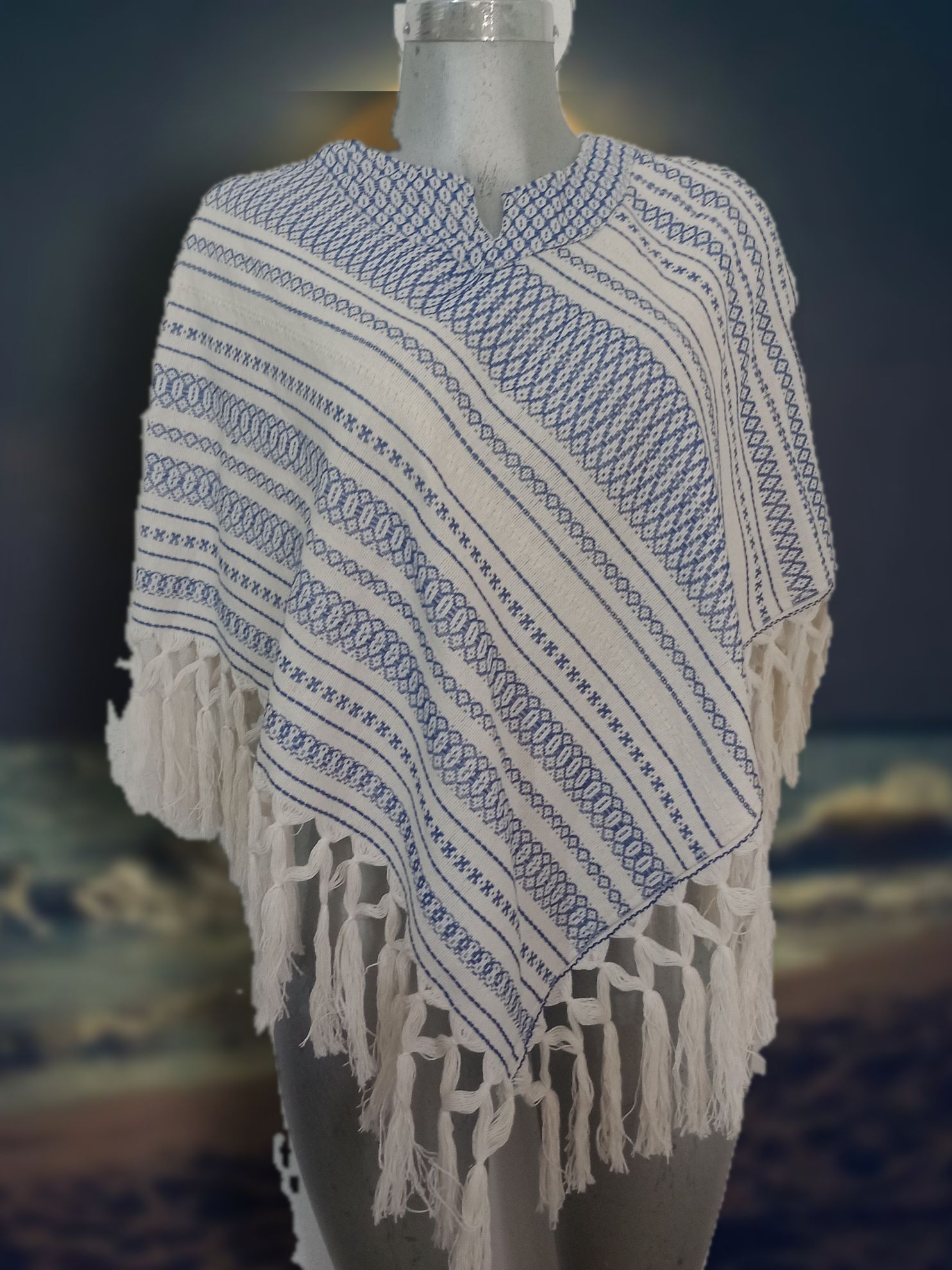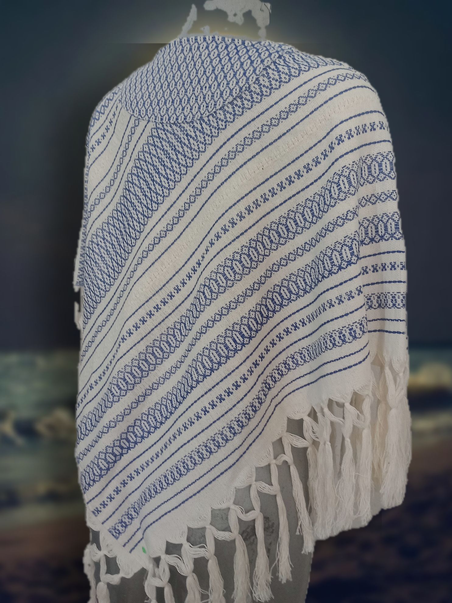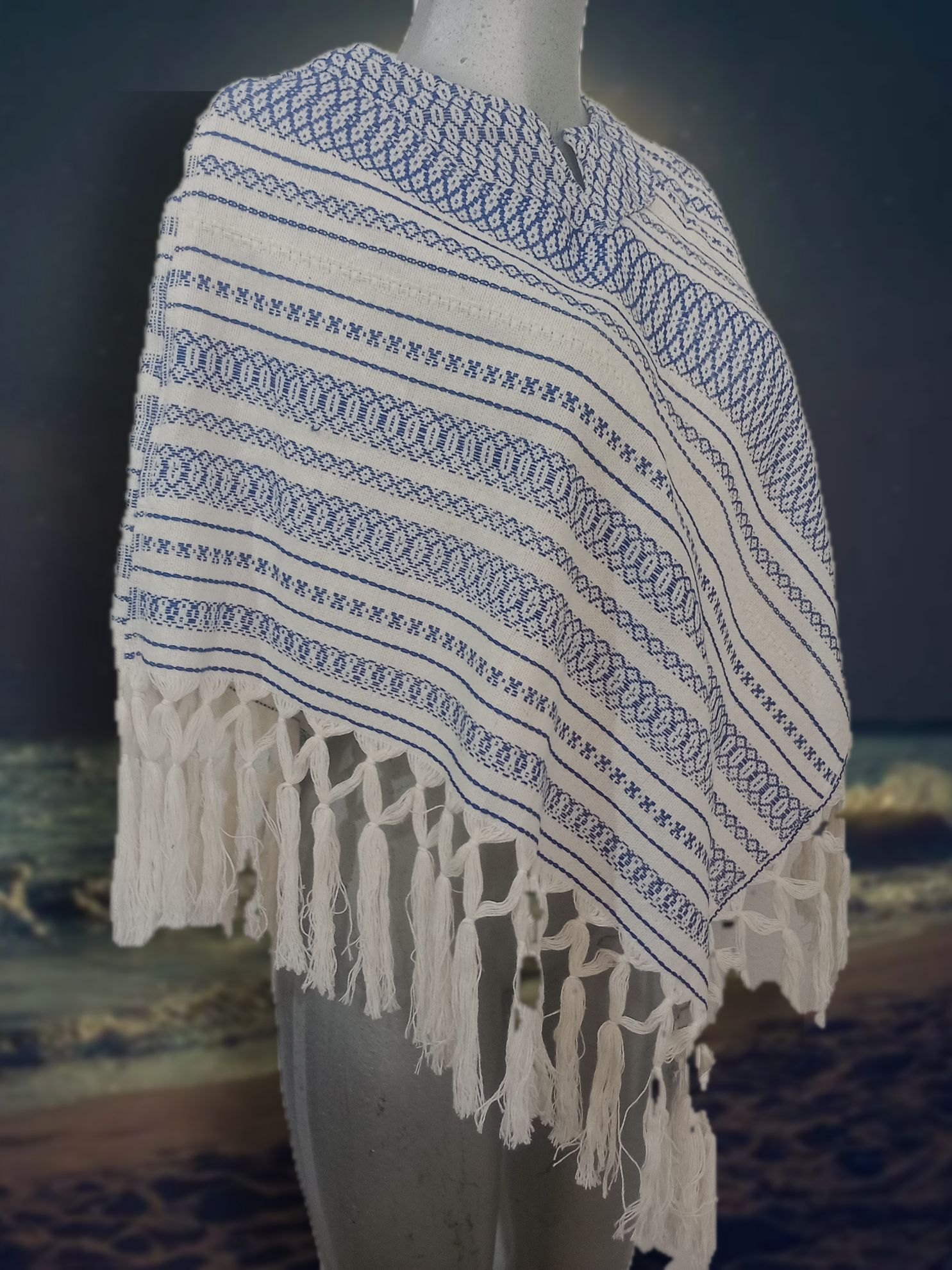 Quexquemetl elaborado en telar,de algodón con puntas juvenil