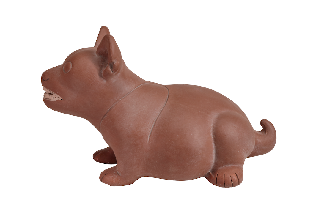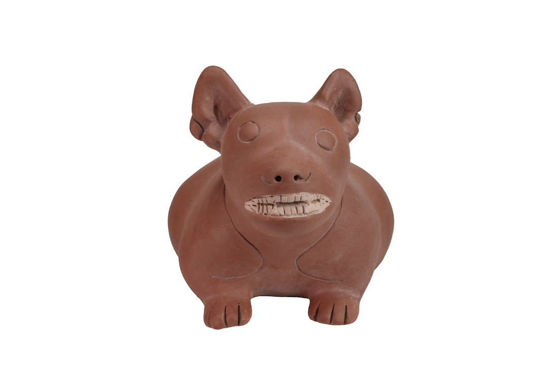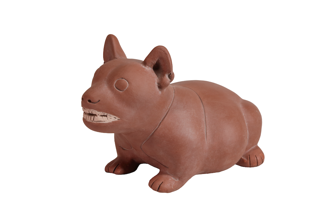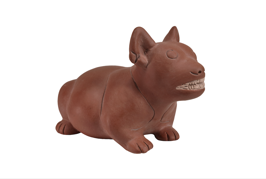 Durante la época clásica, en la anti- gua Colima se realizaron de manera detallada y realista representaciones de la fauna con la que convivieron sus habitantes. El ceramista que realizó magistralmente este recipiente muestra a un perro cebado llamado xoloizcuintle en lengua náhuatl. Este animal acompañaba a su amo en la vida cotidiana o también le servía de alimento.