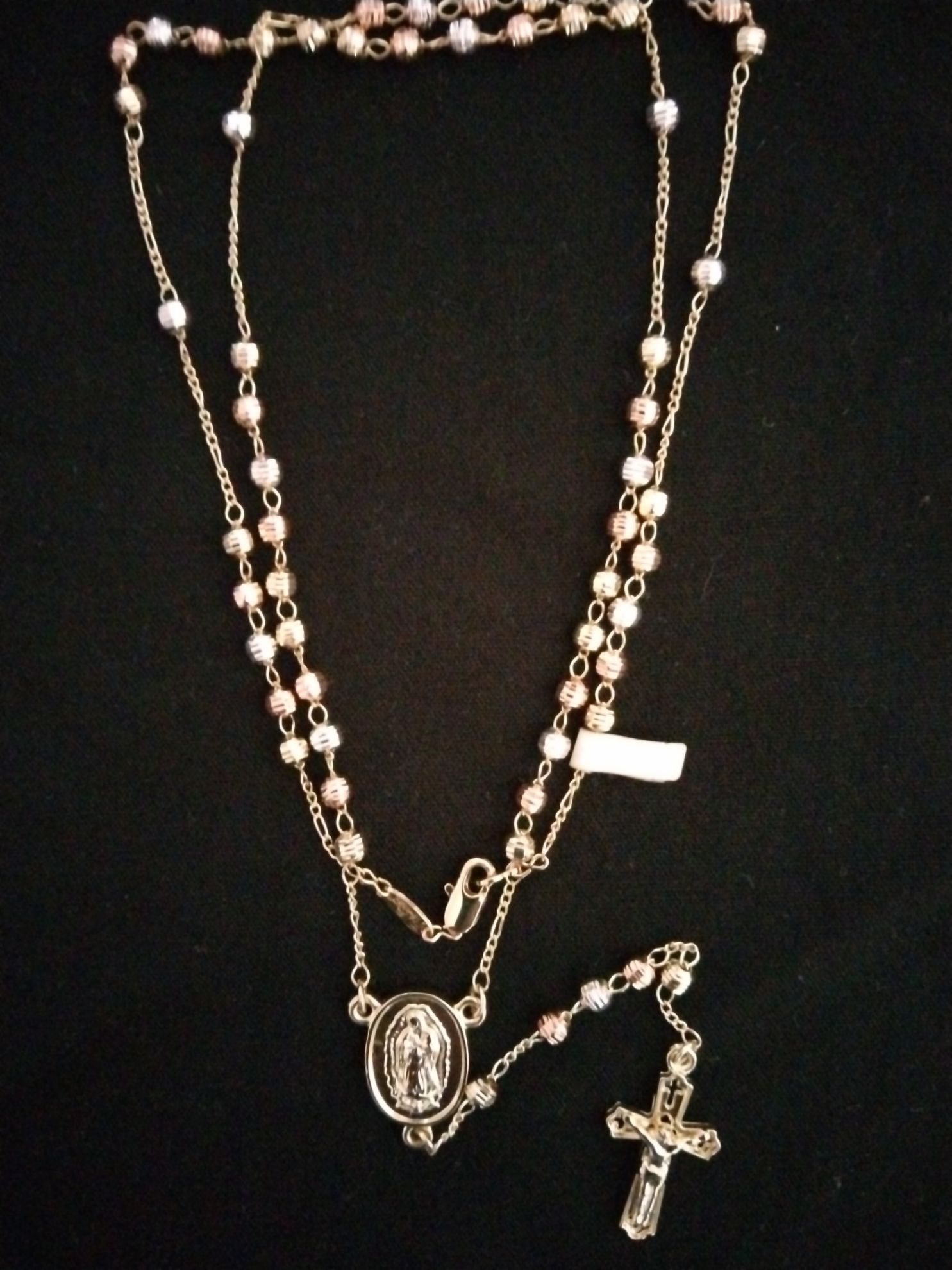 Joyeria en baño de oro, florentino, rosario y collar, con cuentas.