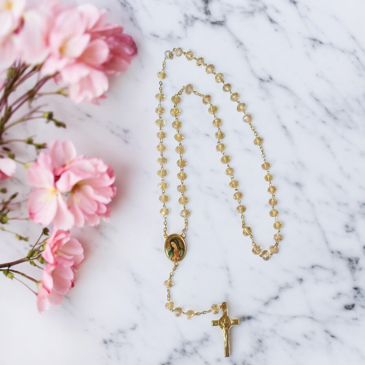 ***ROSARIO DE DONA DE CRISTAL 8 x 6MM DORADO***-COLOR: HONEY-LARGO: 45CM DE APROXIMADAMENTE-INCLUYE ESTUCHE DE ACRILICO TRANSPARENTE¡¡¡ SOMOS FABRICANTES!!!