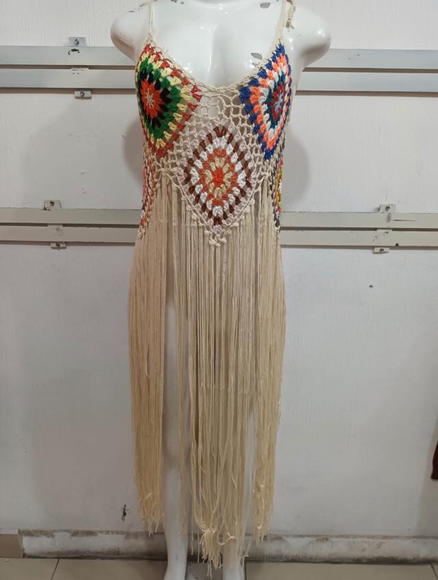 Lindo pareo color caqui, tejido a mano, moderno y muy atractivo para lucir en playa