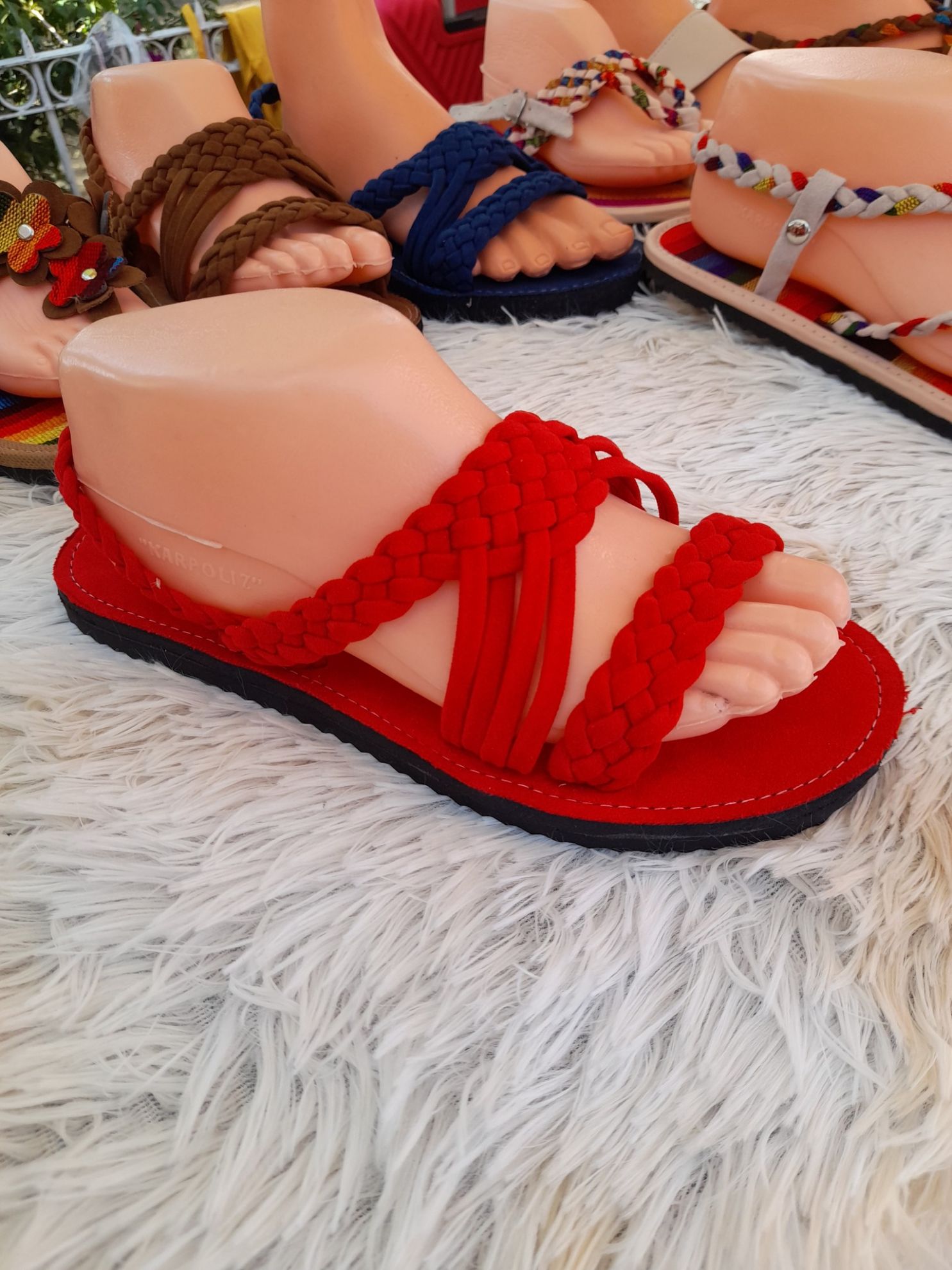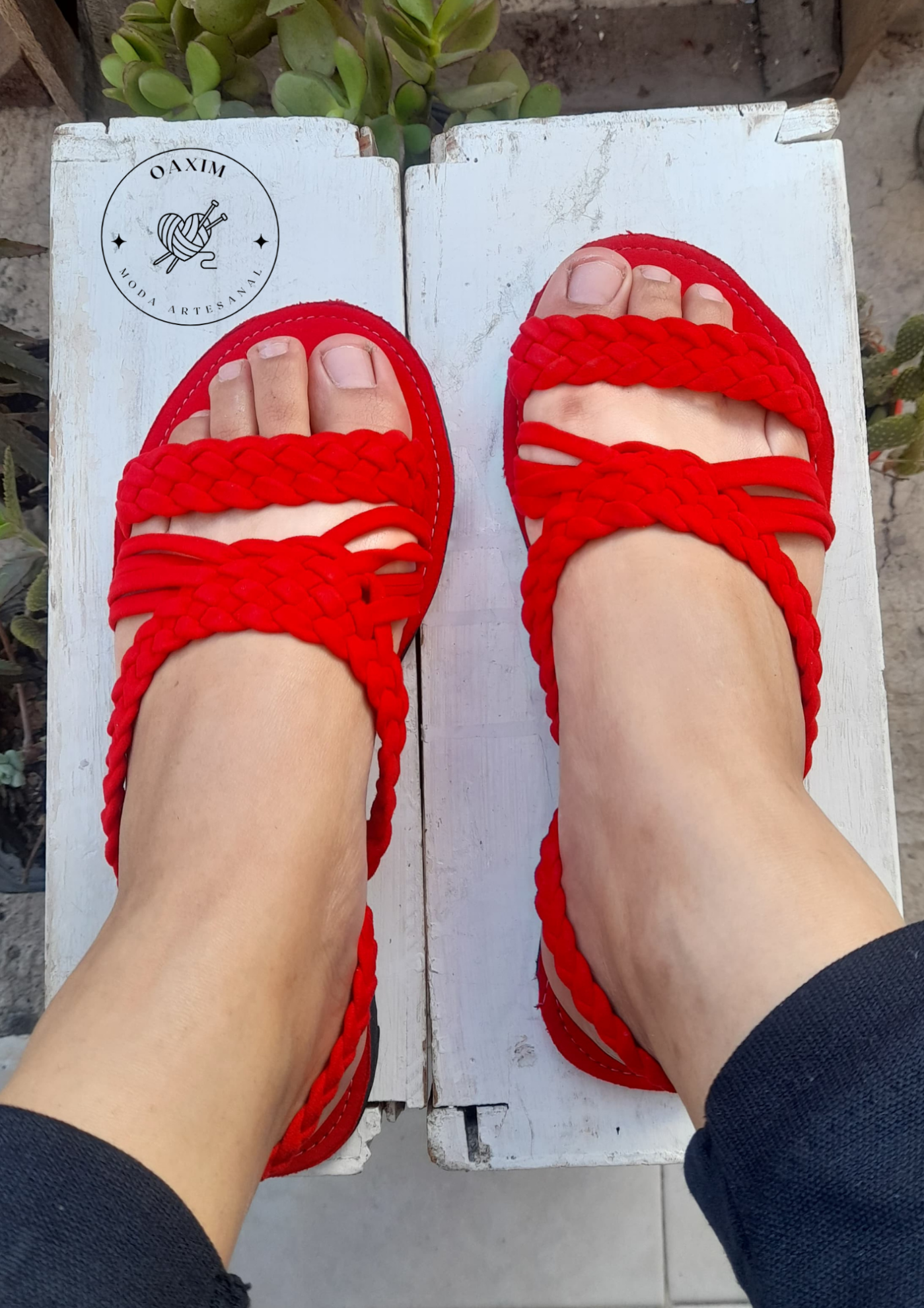 Calzado hecho a mano, tela y/o piel sintética costurado y reforzado con pegamento sobre suela de foami endurecido y comprimido.