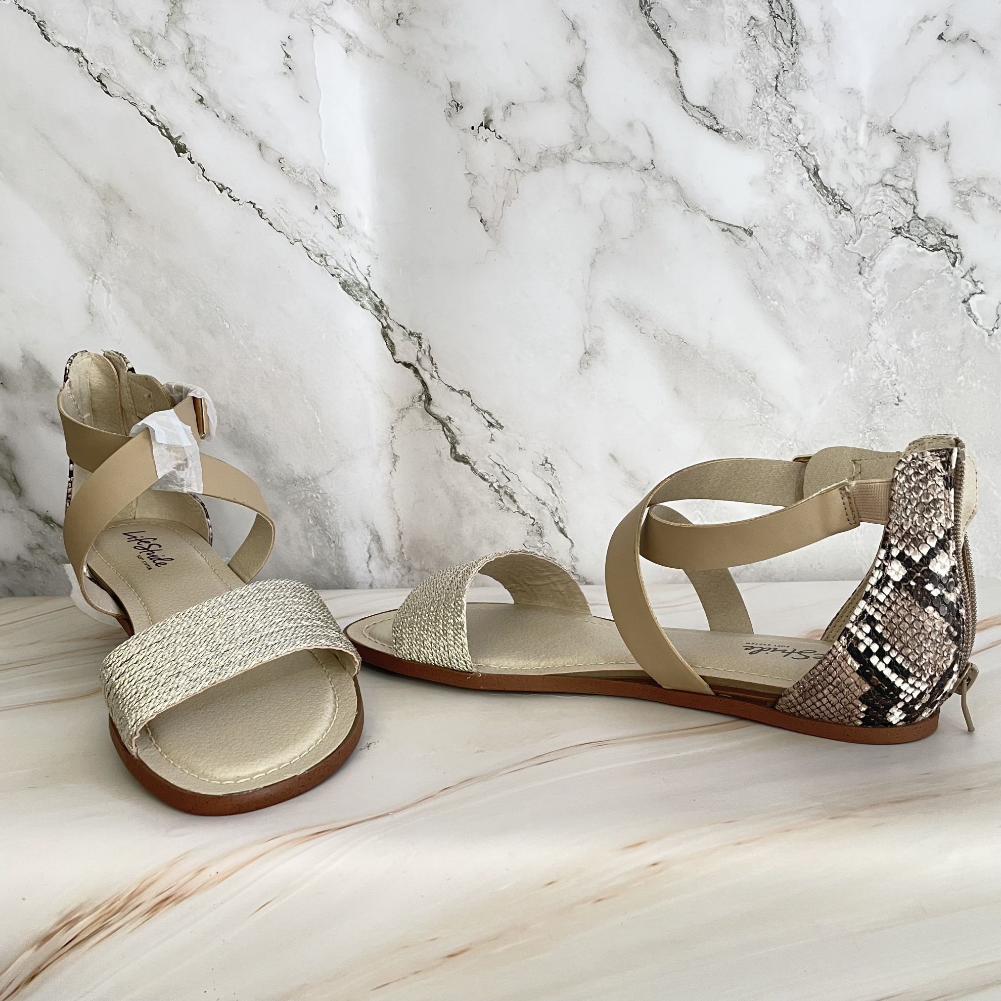 Sandalia plana Life Stride Velocity 2.0 Color: ARENA SERPIENTE Talla: 7 , Estilo: ZAPATO BAJO ABIERTO