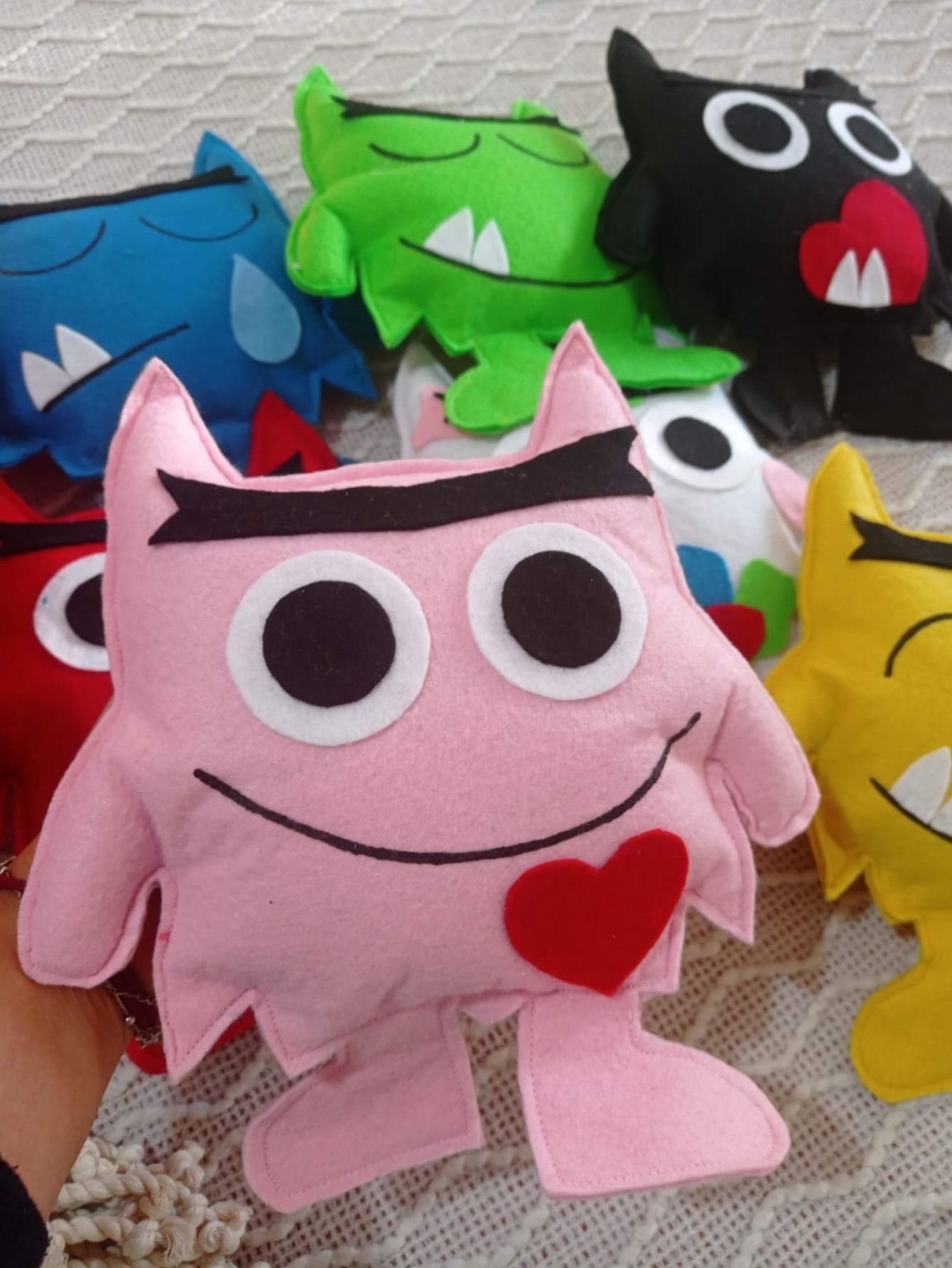 Set de 7 monstruos de la emociones de 24 x 23 cm, Juguetes de fieltro, hecho a mano, Monstruo manualidades, mi pequeño muñeco de Dibujos Animados de Monstruo Emocional, Juguete de Monstruo Azul/Rojo, Juego de muñecos de colores, paquete set de 7 muñecos terapia emocional, apoyo psicología, regalo cumpleaños navidad