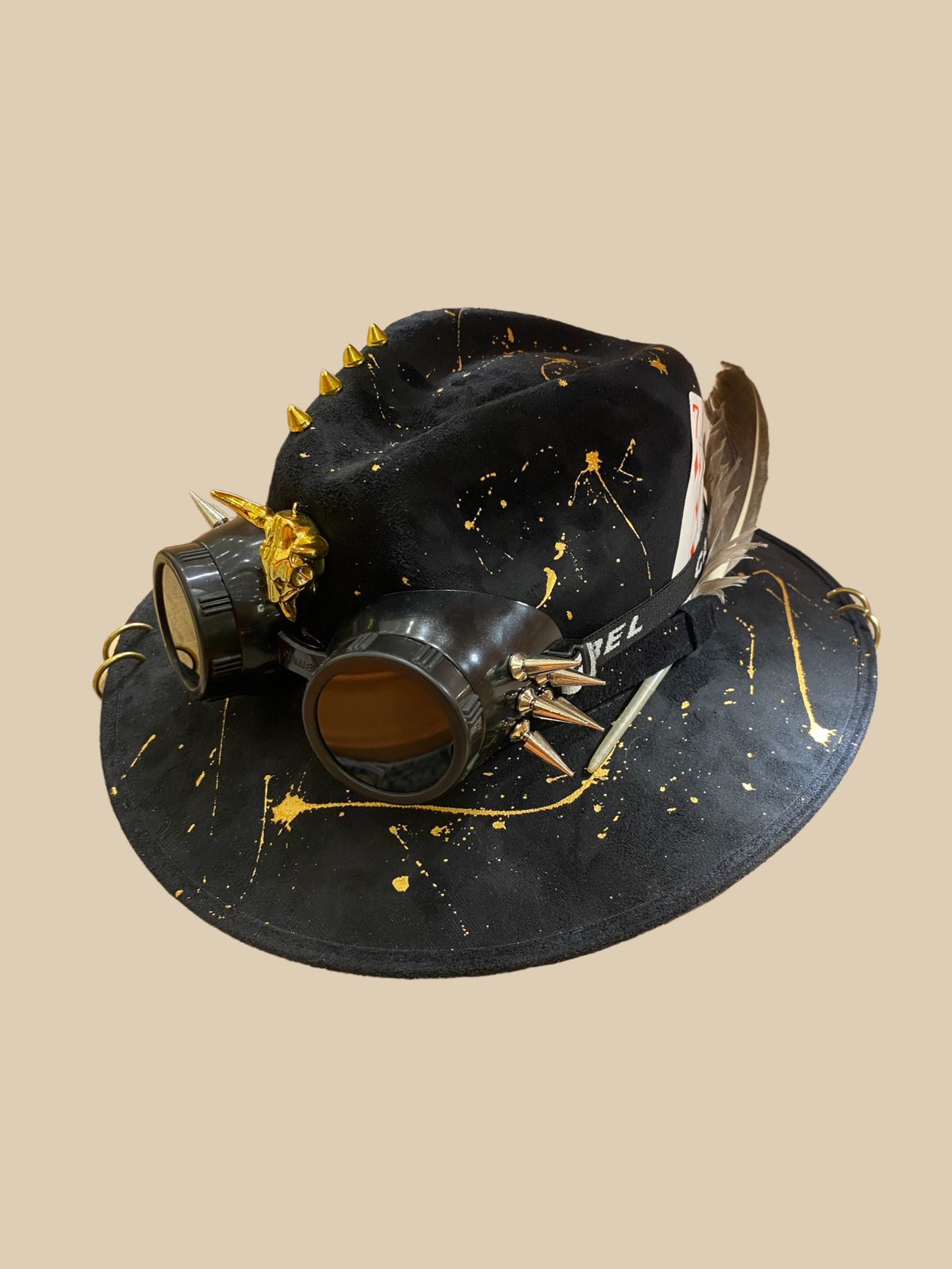 Sombrero estilo steampunk diseñado con dijes de acero inoxidable