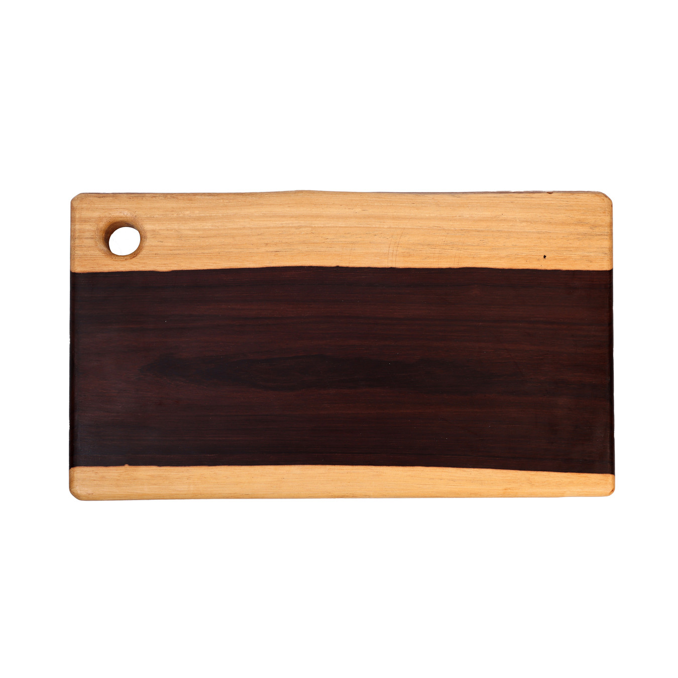 Tabla de madera de ciricote tallada, su tono natural se acentúa mediante un lijado fino y la aplicación de cera de abeja. Es sin duda un artículo utilitario e indispensable en la cocina.