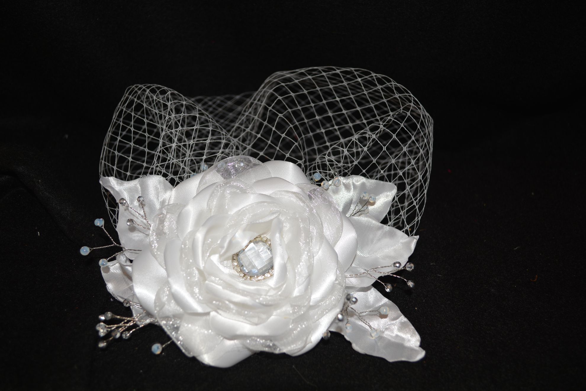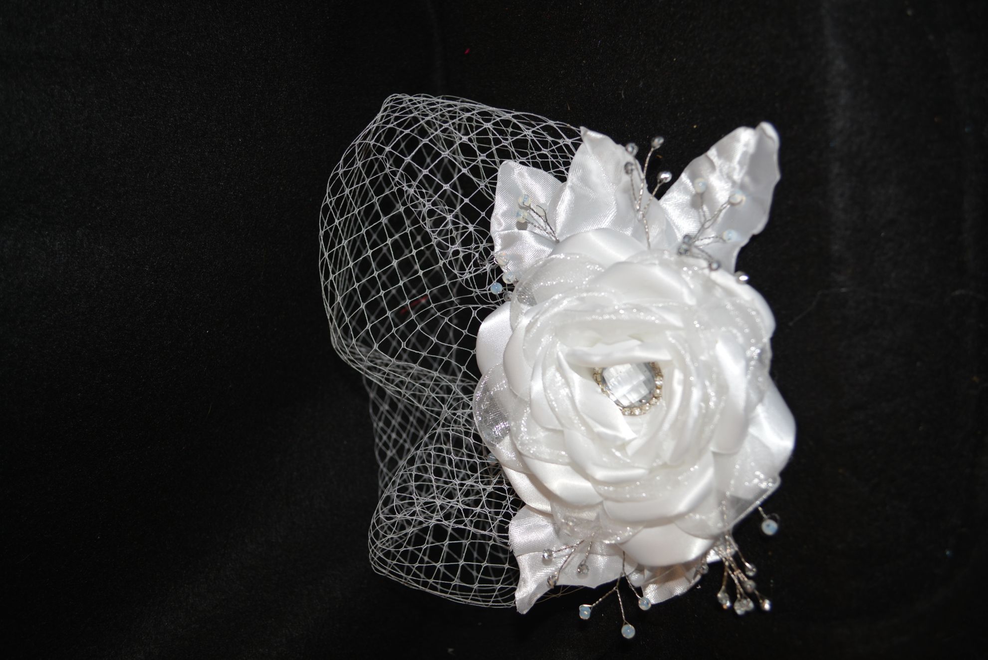 hermoso tocado hecho a mano con sristale y flor hecha a mano