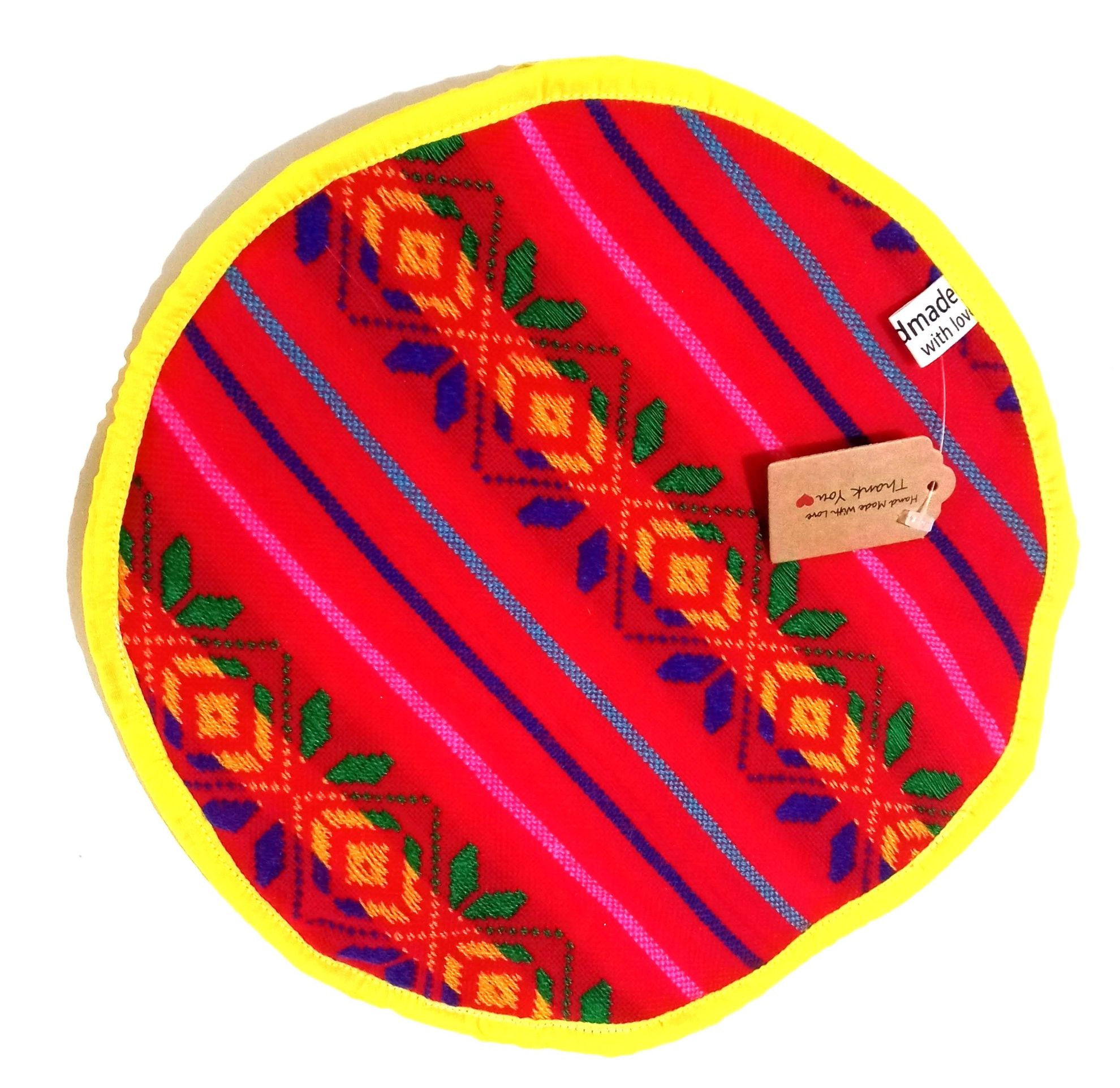 Ideal para mantener sus tortillas calientes por 1 hora (dependiendo de la zona donde se reside), el interior es de tela acolchada con fibras de algodón que permite se conserve el calor sin que se humedezcan las tortillas , cubierta exterior en tela de cambaya , elaborada en suaves hilos de algodón y lino con franjas de varios colores alegres característicos del hermoso país Mexicano. Ideal para cualquier reunión Familiar en donde se quiera realzar el estilo Mexicano, o simplemente crear un ambiente cálido hogareño.-1 pza en cada empaque- Medidas 26 cm x 26 cm, (10 x 10 inches) Producto Nuevo hecho a mano por artesanas Mexicanas. (Precio + Flete)