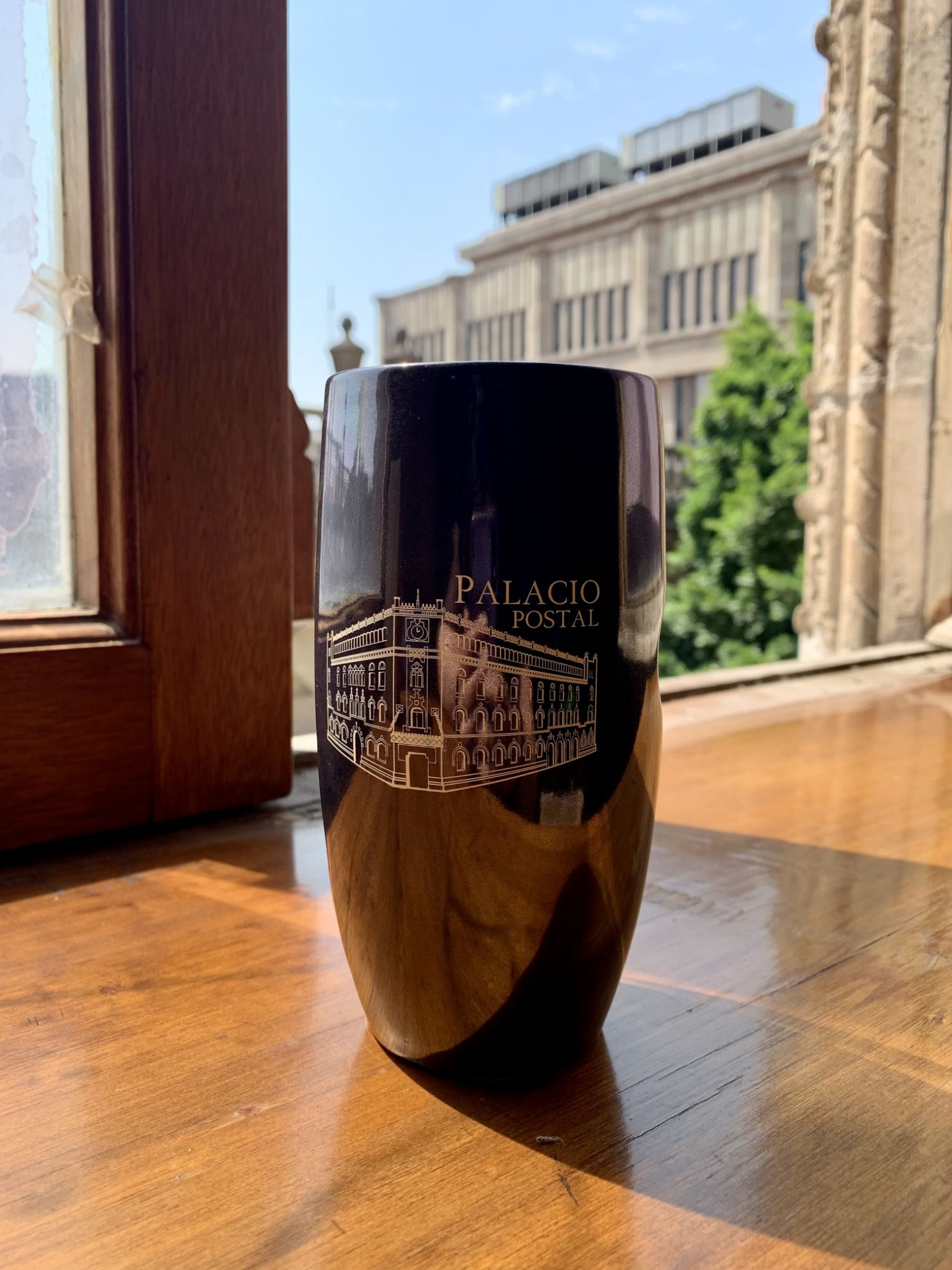 Caso de cerámica en color negro con estampado de Palacio Postal. Con capacidad para 100ml.